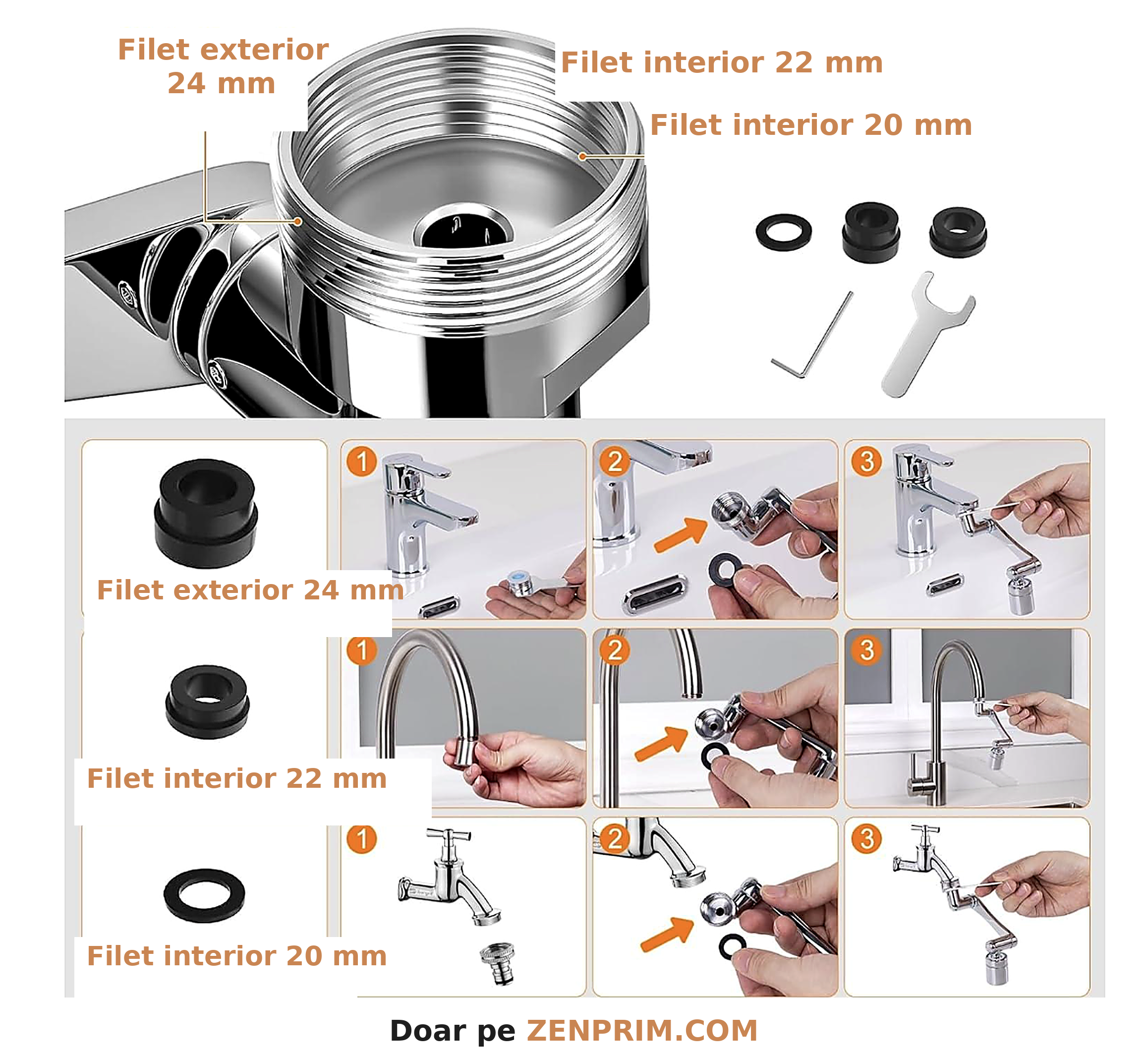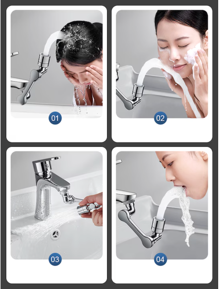Direcționează jetul precis, în câteva secunde, cu o extensie rotativă de robinet.